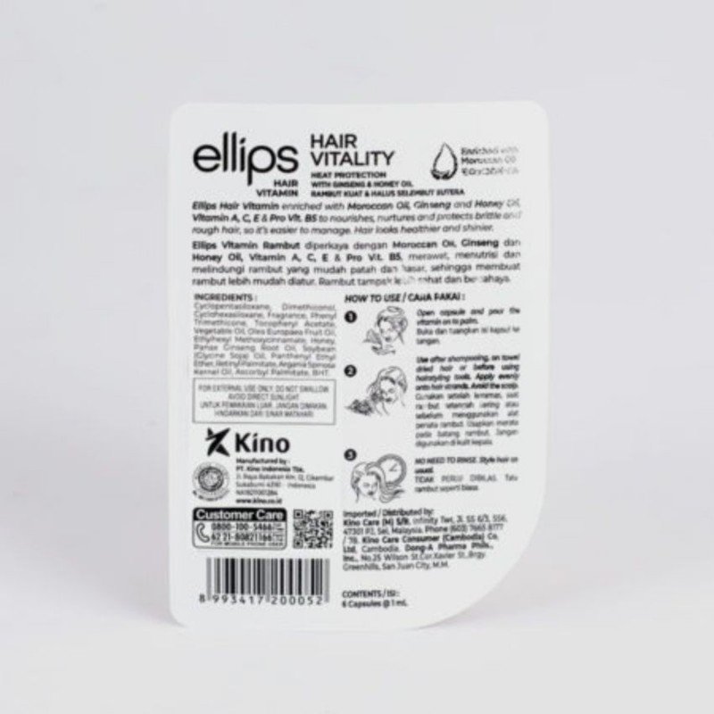 ✅ تغذية عميقة… وحيوية بتبدأ من أول كبسولة. كبسولات Ellips بزيت الأرجان مصممة لتغذية الشعر بعمق ومنحه الحيوية واللمعان، خاصة للشعر الجاف أو التالف. كل عبوة تحتوي على 6 كبسولات بتركيبة خفيفة لا تترك أي بقايا دهنية.