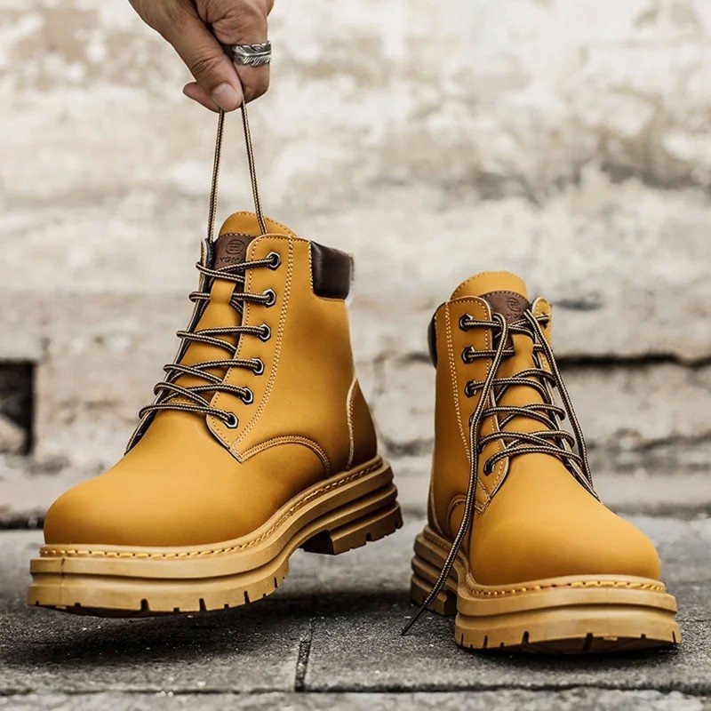 Fashion Men’s High-top Leather Boots – حذاء جلد شتوي بكعب عالي للرجال لون بيج