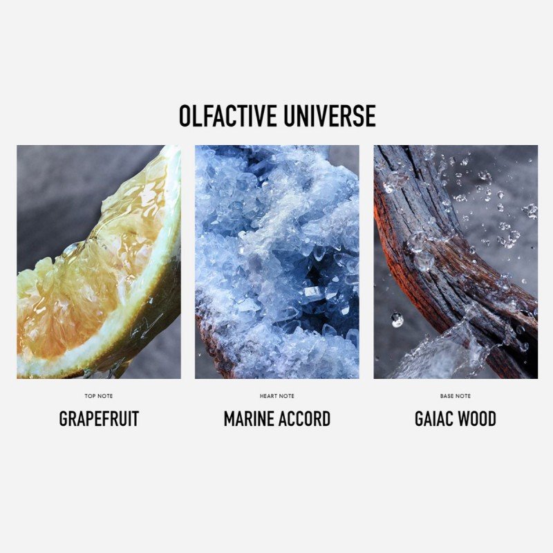 ✅ مكونات وتركيبة العطر: إفتتاحية العطر نسيم البحر, الجريب فروت و الماندرين (اليوسفي); قلب العطر ورق اللورا و الياسمين; قاعدة العطر تتكون من الآمبرغريس, أخشاب الغاياك, طحلب البلوط (طحلب السنديان) و الباتشولي.