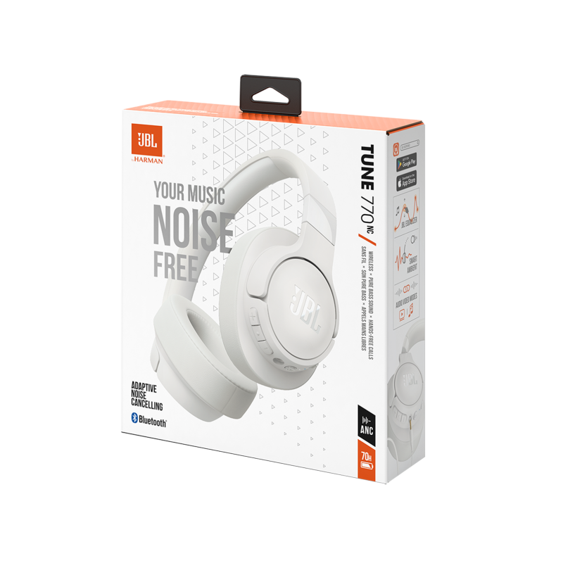 تُقدم سماعات JBL Tune 770NC اللاسلكية فوق الأذن باللون الابيض تجربة صوتية مميزة بفضل تقنيات إلغاء الضوضاء المتقدمة وجودة الصوت العالية. فيما يلي نظرة عامة على أبرز مواصفاتها: