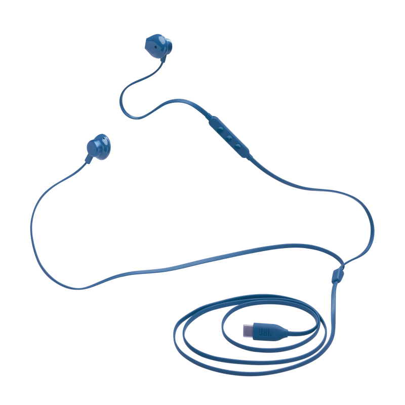 JBL Tune 305C USB Wired Hi-Res Earbud Headphones-Blue