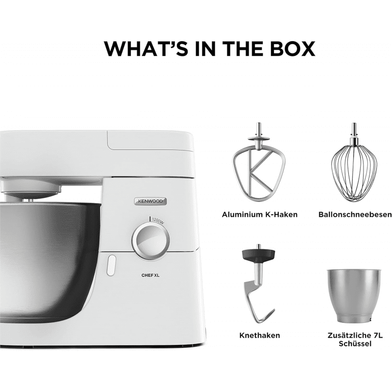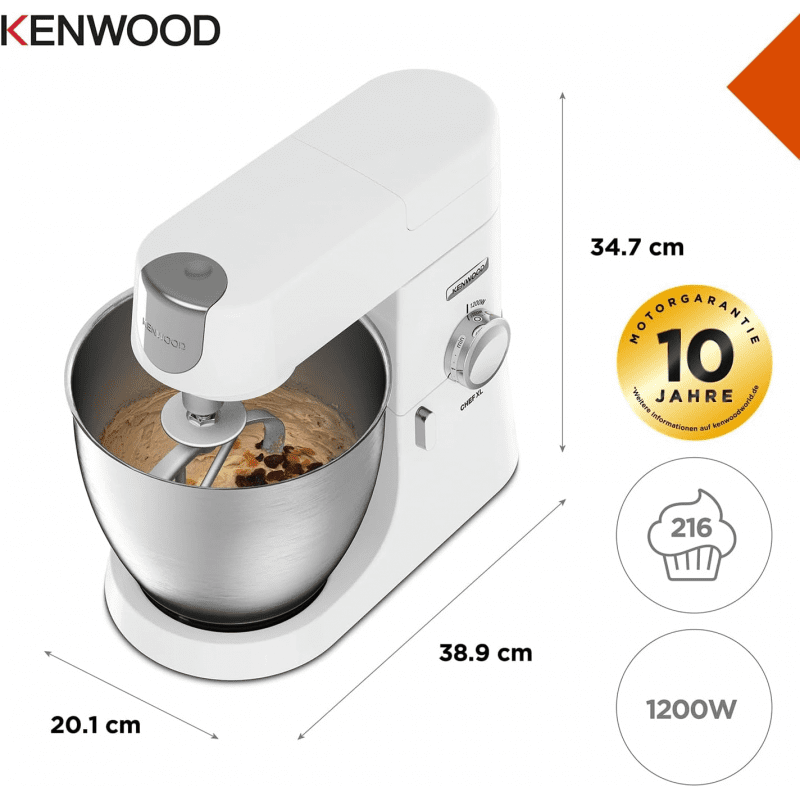 مع Kenwood Chef XL KVL4101W ستحصل على أداء ثابت وقوة كافية لتحضير كل ما يخطر في بالك، من أخف الكريمة إلى أثقل أنواع العجين — بكل سلاسة وأناقة.