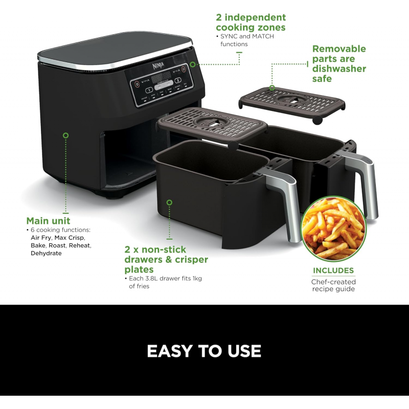 ✅مقلاة هوائية فودي مزدوجة من نينجا