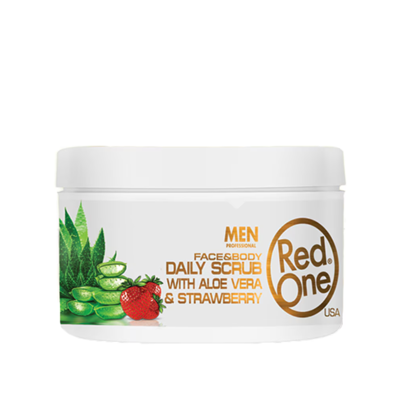 red one face and body scrub مقشر عميق للبشرة الحساسه بخلاصة الفراولة والاوليفيرا الطبيعيه مع تفتيح فوري