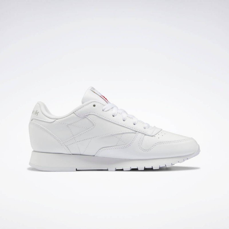 Clean, minimalist design keeps your look forever fresh. These Reebok Classic Leather Shoes update the iconic retro style. A supple leather upper and logos pulled from the archives give you trainers that always work, no matter what you pair them with.