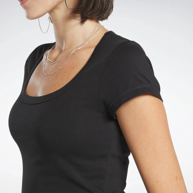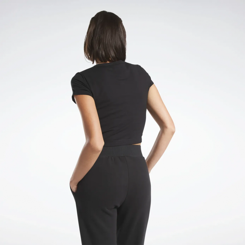 Reebok Women Classics Cropped Jersey T-Shirt- تيشيرت ريبوك كلاسيك كروبيد جيرسي للنساء لون أسود