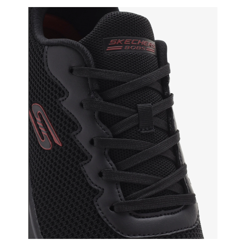 Features:- Skechers Memory Foam™ cushioned comfort footbed- Crafted with 100% vegan materials- Engineered knit upper with a lace-up front- Flexible traction outsole- 1 1/4-inch heel- Skechers BOBS Sport™ logo detail