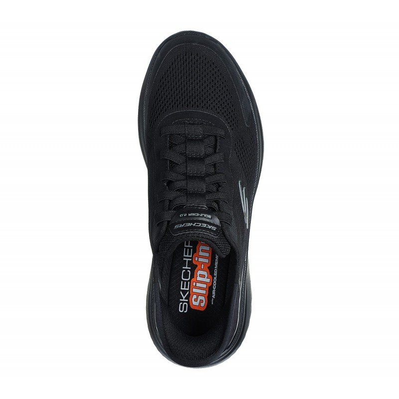 Just Slip In™ to flexible and lightweight comfort wearing Skechers Hands Free Slip-ins®: Bounder 2.0 – Emerged. Designed with our exclusive Heel Pillow™, this sporty vegan design features an engineered mesh upper with a stretch-lace front, a Skechers Slip-ins® molded heel panel, and a cushioned Skechers Air-Cooled Memory Foam® insole.