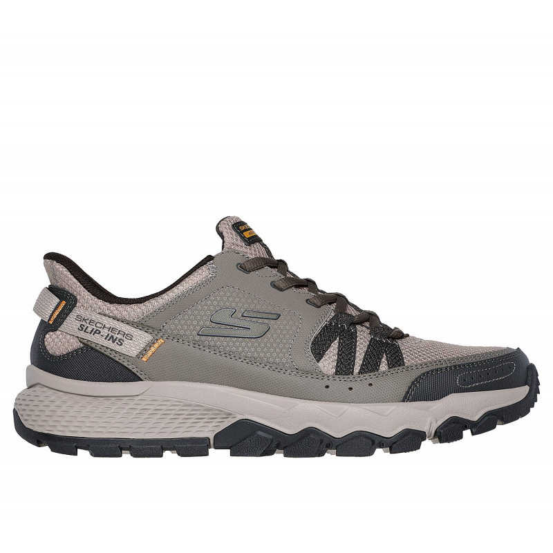 Take the trail in effortless comfort with Skechers Slip-ins®: Dynamite AT – Col. Designed with our Heel Pillow®, this versatile outdoor style features a lace-up leather and textile upper and a cushioned Skechers Air-Cooled Memory Foam® insole.