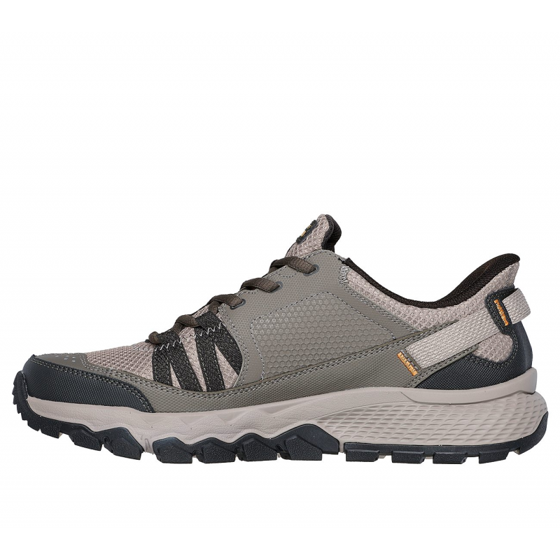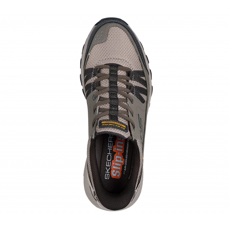 نعل Skechers Air-Cooled Memory Foam® يوفر توسيدًا ناعمًا وراحة تدوم طوال اليوم، بينما يضمن التصميم الخارجي المصنوع من الجلد والنسيج مزيجًا مثاليًا بين المتانة والتهوية. النعل السفلي المرن وعالي التماسك يجعل الحذاء مثاليًا للمشي على المسارات الوعرة أو في الرحلات اليومية.