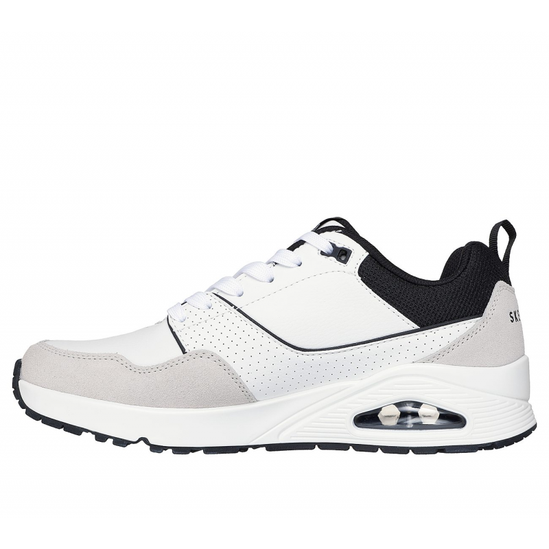 Throwback jogger style meets comfort in Skechers Street™ Uno – Retro One. This lace-up retro style jogger features a duraleather, leather, and suede overlay upper with a Skechers Air-Cooled Memory Foam® insole and translucent Skech-Air® airbag midsole.