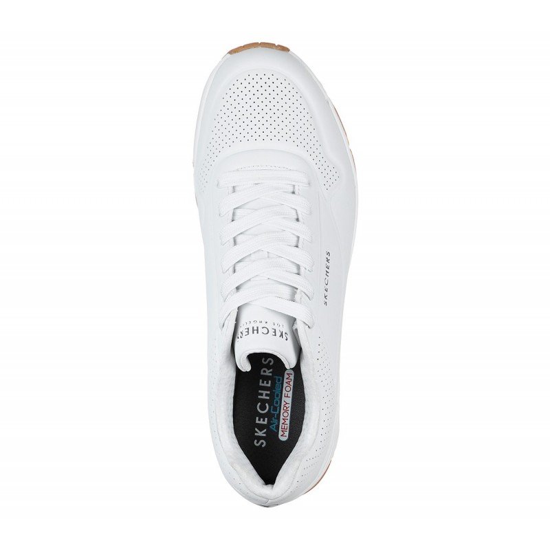 Classic air-cushioned comfort meets a fresh update in the Skechers Street™ Street Uno – Stand on Air shoe. This lace-up fashion sneaker features a smooth perforated synthetic upper with an Air-Cooled Memory Foam® insole and Skech-Air® visible air-cushioned midsole..