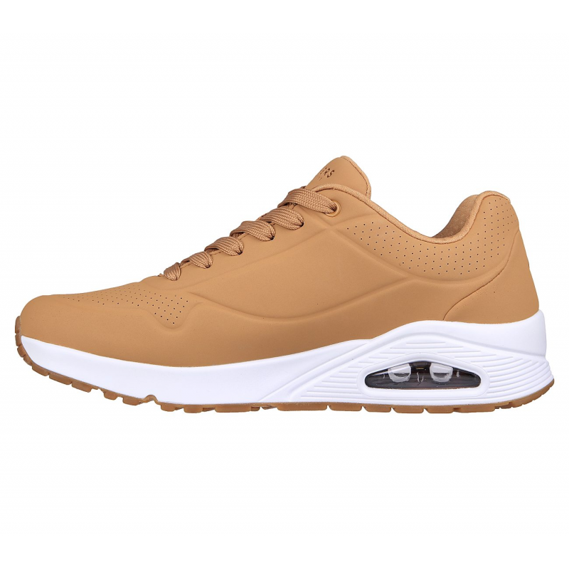 اجمع بين الأناقة والراحة القصوى مع Skechers Street™ Uno – Stand on Air، الحذاء المثالي للإطلالات العصرية مع أداء مبهر طوال اليوم. يتميز هذا الحذاء بتصميم كلاسيكي بأربطة، مع جزء علوي من الجلد الصناعي المثقّب Durabuck للتهوية، بالإضافة إلى نعل Skech-Air® المزوّد بوسادة هوائية مرئية لامتصاص الصدمات. كما يأتي بنعل داخلي Skechers Air-Cooled Memory Foam® الذي يوفر توسيدًا ناعمًا لتجربة ارتداء مريحة تدوم طوال اليوم.