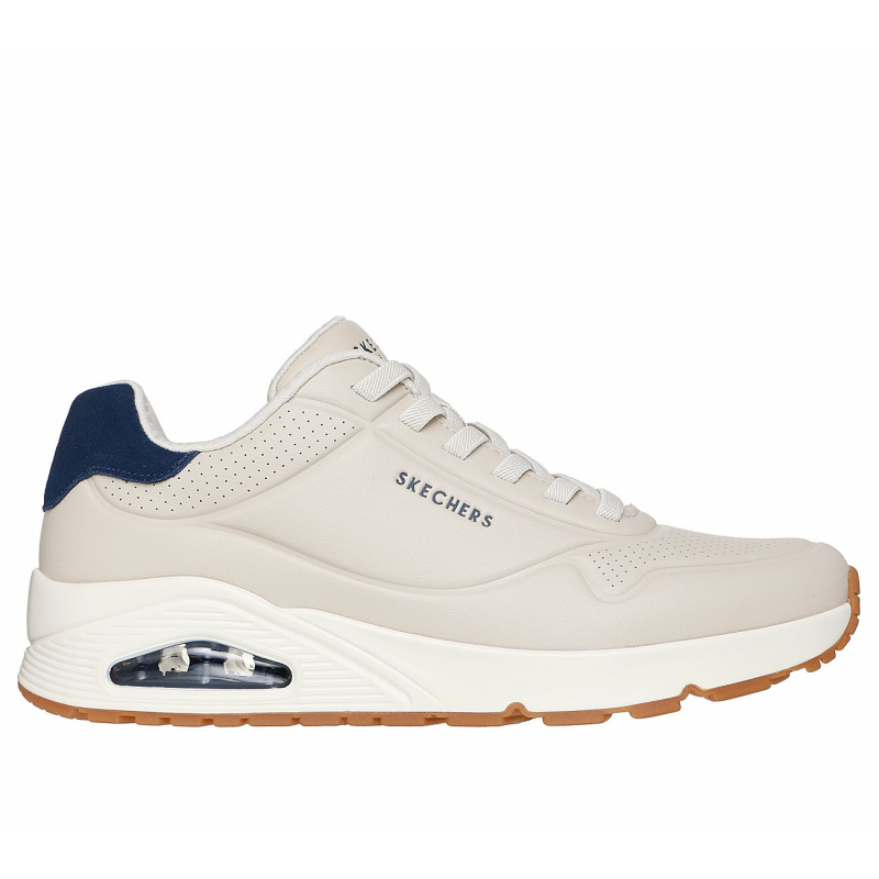 Smooth, sporty style and easy-wearing comfort combine in Skechers Street™ Uno – Tailored Air. This No Tie Fit™ sneaker features a duraleather upper with fixed stretch laces, a Skechers Air-Cooled Memory Foam® insole, and a Skech-Air® visible airbag midsole.