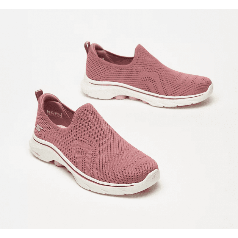 Walk in easy-wearing comfort with Skechers GO WALK 7™ – Amina. This laceless vegan design features a engineered knit Stretch Fit® upper with a Skechers Air-Cooled Goga Mat™ insole, lightweight ULTRA GO® cushioning and high-rebound Hyper Pillar Technology™ for added support.