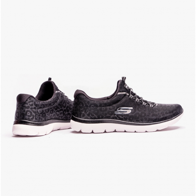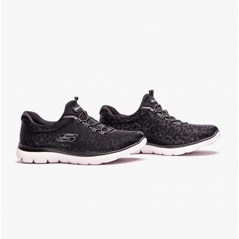Reach the height of comfort and athletic style with Skechers Summits – Sparkling Spots. This fun vegan design features a sparkly leopard mesh upper with fixed stretch laces and a cushioned Skechers Memory Foam™ cushioned comfort insole.