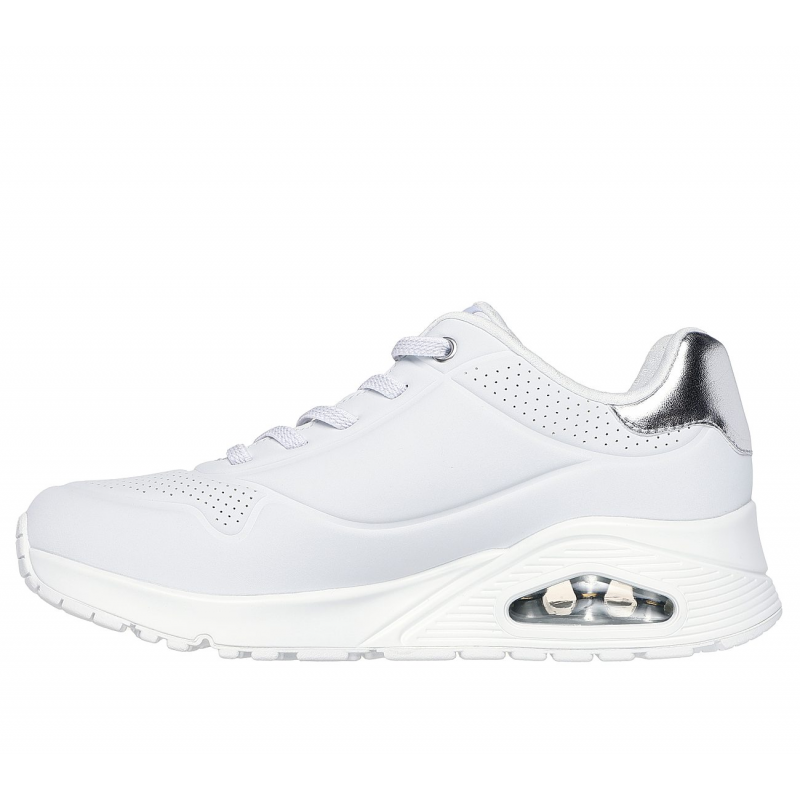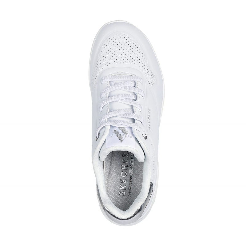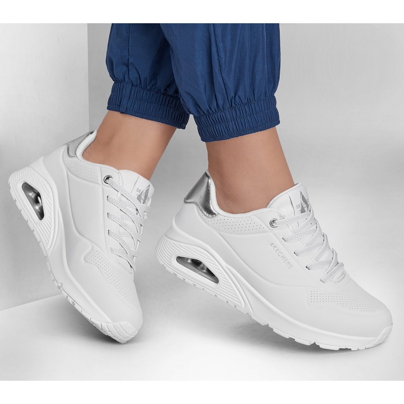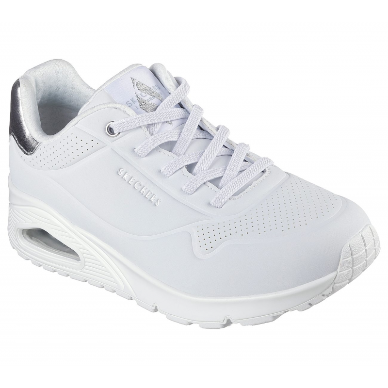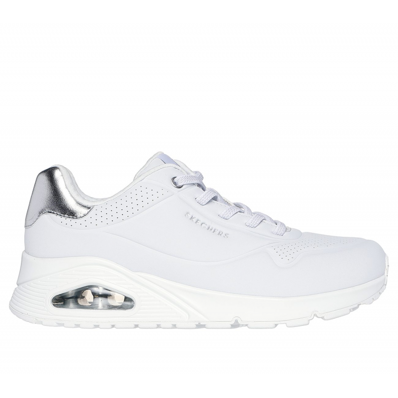 Skechers Women’s Uno – Shimmer Away Shoes – حذاء سكيتشرز أونو – شيمر اويه للنساء لون فضي وأبيض