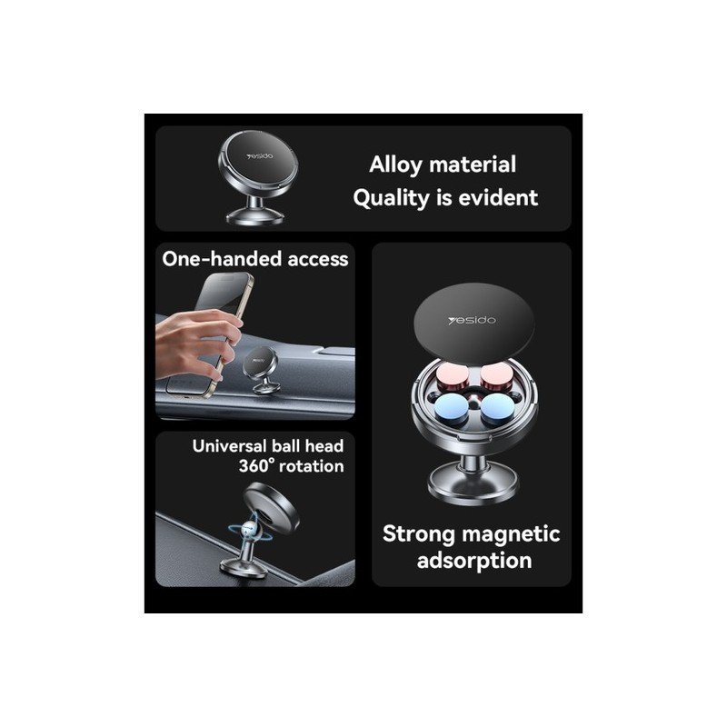 حامل جوال مغناطيسي صغير للتابلوه من Yesido C215 – ثبات فائق بحجم مدمج! إذا كنت تبحث عن حامل أنيق، صغير الحجم، وفعّال لتثبيت هاتفك في السيارة، فإن حامل Yesido C215 هو خيارك المثالي.
