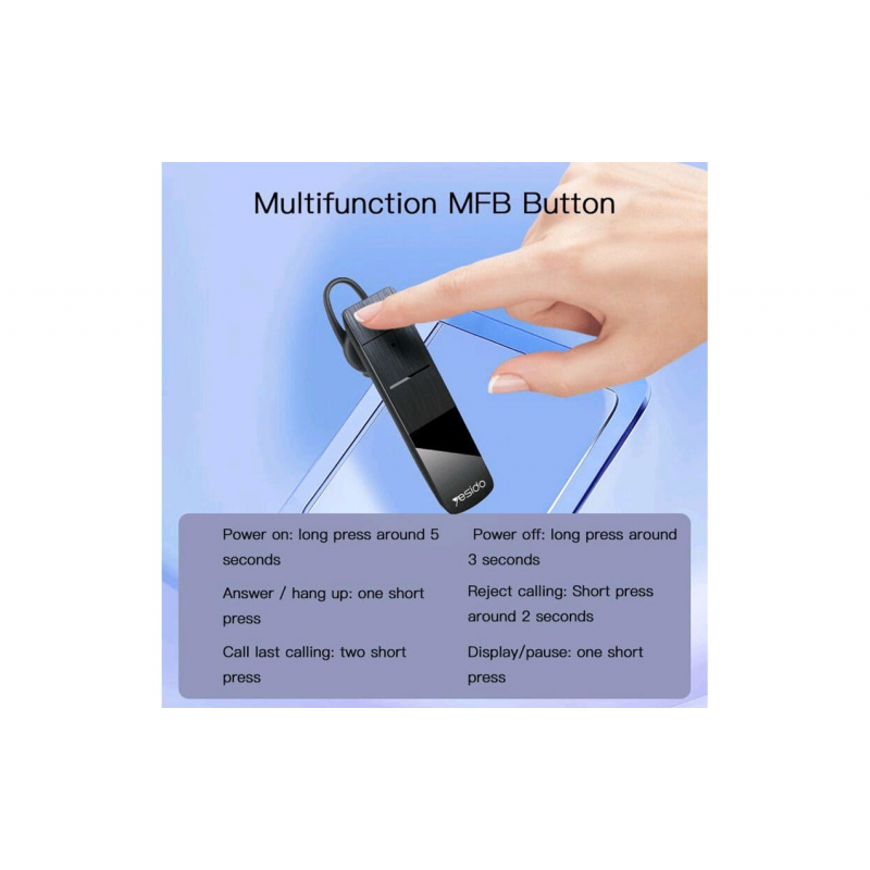 سماعة الرأس اللاسلكية Yesido YB06 هي سماعة أذن أحادية مخصصة للأعمال، مصممة لتوفير تجربة اتصال مريحة وعالية الجودة.